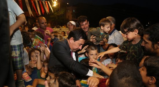 Yakaköy köy meydanında kurulan iftar sofrasında önce vatandaşlara yemek dağıtan Başkan Aras, daha sonra sıraya girerek kendi yemeğini aldı. Oruçların hep birlikte açılmasının ardından kısa bir konuşma yapan Başkan Aras, Ramazan ayının sevgi, hoşgörü ve kardeşlik duygularının yaşandığı kutsal bir ay olduğunu belirterek, iftar davetine katılan tüm vatandaşlara teşekkür etti. Aras, “Bu güzel ayda sizlerle birlikte aşımızı yemeğimizi paylaşmanın gururunu yaşıyoruz. Malumunuz kısa süre önce sizlere hizmet etmeye başladık. Elimizden geleni değil, daha da fazlasını yapmak için çalışıyoruz. Göreceksiniz çok kısa süre sonra herkese, her kesime, her bölgeye yetişeceğiz. Bunun için gece gündüz tüm belediye personelimizle birlikte çalışıyoruz ki sizlerin güvenine layık olabilelim.” diye konuştu.