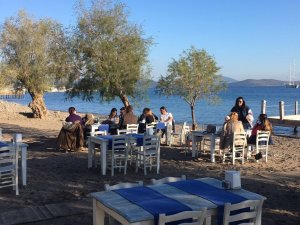 Bodrumlular ve Bodrum’a tatile gelenler, Bodrum’a bağlı Ortakent Yahşi Sahili’nde yer alan Kefi’de, özellikle hafta sonu, yaklaşık 20 dereceyi bulan sıcak havada sahile akın ederek gün boyu güneşin altında oturup dostlarıyla ve aileleriyle keyifli vakit geçirdiler.