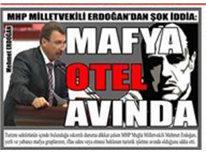 Turizm sektörünün içinde bulunduğu sıkıntılı duruma dikkat çeken MHP Muğla Milletvekili Mehmet Erdoğan, yerli ve yabancı mafya gruplarının, iflas eden veya etmesi beklenen turistik işletme avında olduğunu iddia etti.