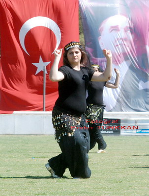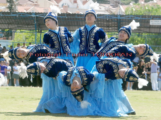 Daha sonra öğrenciler çeşitli gösteriler sundu. Aksaz Bandosu'nun başarıyla görevini yerine getirdiği stattaki kutlamaya, Kırgızistan'dan gelen konuk gençler ayrı bir renk kattı. Kırgızistan Türk-Kırgız Kız Meslek Lisesi öğrencilerinin dans gösterisi büyük alkış aldı.
