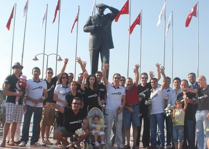 Törenin ardından alana gelen ve kendileri Marmaris Kartalları diye adlandıran bir grup Beşiktaş taraftarı, 30 Ağustos Zafer Bayramı nedeniyle vatandaşlar ile turistlere karanfiller dağıttı. (Ender TÜRKKAN)