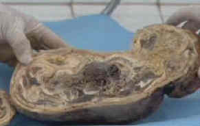 Operasyon sonrasında ise ceninin tamamen taşlaştığı görülür. En şaşırtıcı olan ise ceninin kendi hayati organlarını ve karın duvarını eritip diş bölgenin sert bir cisim halini almasını sağlamasıdır.