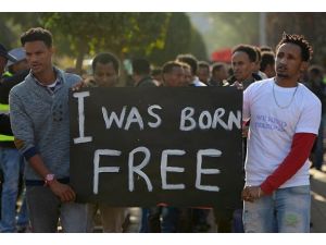 Göçmenlerin yoğun olarak yaşadığı Levinsky Parkı'nda toplanan binlerce Afrikalı, üzerinde İngilizce "Biz insanız", "Özgür olmak istiyorum" ve "Suçlu değil, mülteciyiz" yazılı pankart ve dövizlerle Tel Aviv Belediyesinin bulunduğu Rabin Meydanı'na geldi.