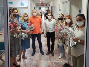 Partili yöneticiler Marmaris Devlet Hastanesinde görevi başındaki hemşirelere karanfil dağıttı.