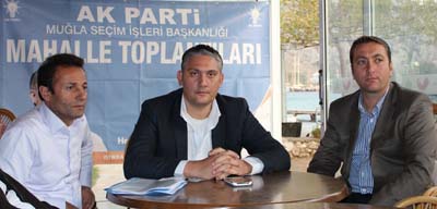 Ak Parti Muğla İl Başkan Yardımcıları Seçim İşleri Başkanı Esat Tugay ve Halkla İlişkiler Başkanı Ozan Balcı, Ak Parti Marmaris İlçe Yönetim Kurulu Üyeleri Mehmet Toklaç ve Yemliha Coşkun ile birlikte iki gün boyunca köy ve mahalle toplantıları gerçekleştirdiler. Köylülerin kendilerine gösterdiği ilgiden bir hayli kalan Ak Parti’nin teknik kadrosu köylerdeki sandık kurullarının nasıl çalışacağı ile ilgilide sandık kurulları ile ayrıca toplantı gerçekleştirdiler. Ak Parti il başkan yardımcıları ve ilçe yönetim kurulu üyeleri iki günlük çalışma programı takviminde 11 köy ve 2 beldede sandık kurullarını ile teknik çalışması yaptılar. İlk günlük çalışam programında Osmaniye, Bayır, Söğüt, Taşlıca, Selimiye, Turgut, Orhaniye köylerinin yanı sıra Bozburun Beldesi’nde ikinci günde ise, Çetibeli, Çamlı, Yeşil belde, Karacasöğüt, Hisarönü, sandık kurulları toplantısını gerçekleştirdiler.