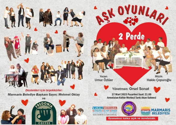 Marmaris Belediyesi İşbirliği ile hazırlanan, Umur Özlüer'in yazdığı, Hakkı Çopuroğlu'nun müziklerini yaptığı Orsel Sonat'ın yönetmenliğini yaptığı "Aşk Oyunları" adlı oyuna ev sahipliği yapıyor. Oyun hakkında açıklama yapan Kalimerhaba Derneği Başkanı ve Genel Sanat Yönetmeni Selma Sonat; Tiyatroya gönül veren 22 çeşitli mesleklere mensup amatörün rol aldığı oyundaki özverili çalışmaları için onları kutladığını, olanaksızlıklar içerisinde sahnelenmeye çalışılan bu oyunun ilgililerin dikkatini çekerek, bundan sonra yerel amatör tiyatro gruplarına daha cok destek olmalarını ve çalışmalarına kapılarını açacak yeni salonlar ile prova yapacak atölye mekanları beklediklerini söyledi.
