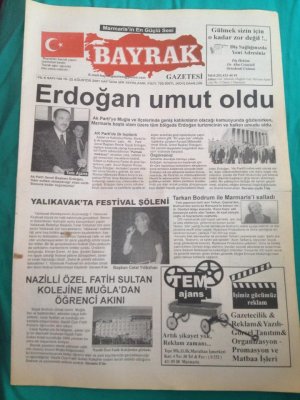 Gazetemizin sahibi Temel Irmak'ın, çıkardığı ve Marmaris'in ilk yazılı medya organlarından birisi olan haftalık Bayrak gazetesinin 15 Ağustos 2001 tarihli sayısı, kaldığı otelde AK Parti Genel Başkanı ve Başbakan Recep Tayyip Erdoğan’a verildi.