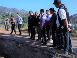Bozburun – Söğüt Mahalleleri arasında projenin devam ettiği bölgeyi ziyaret eden Muğla Büyükşehir Belediye Başkanı Ahmet Aras burada MUSKİ yetkililerinden çalışmalar hakkında brifing aldı. Brifingin ardından açıklamalarda bulunan Aras, çalışmaların tamamlanıp 15 Ağustos’ta 7 Mahalleyi suya kavuşturmak istediklerini söyledi. Aras, “Marmaris Atatürk Barajından Bozburun Yarımadasına içme suyu temini için buradayız. Şuan Bozburun Söğüt arasında çalışmanın devam ettiği bölgedeyiz. Toplam 46 km’lik bir çalışma var burada. Şuan çalışmanın büyük bir bölümünü tamamladık. İlk suyu Turunç Mahallemize ulaştırdık. Turunç artık Atatürk Barajı’ndan gelen içme kullanma suyuna kavuşmuş olacak. Su projemizi etap etap tamamlıyoruz. 15 Ağustos tarihinde Selimiye’ye ve Bozburun’u suya kavuşturmuş olacağız. Daha sonra Orhaniye Mahallesinde ek bir çalışma gerçekleştirip bu bölgede ki su sorununu da ortadan kaldıracağız. Kasım ayı sonunda başlayan çalışmalar Haziran ayında da planladığımız şekilde devam ediyor. Söz verdiğimiz tarih olan 15 Ağustos tarihinde projeyi tamamlayıp bu bölgedeki tüm mahallelere su vermeyi amaçlıyoruz. Şimdiden vatandaşlarımıza hayırlı uğurlu olsun” diye konuştu.