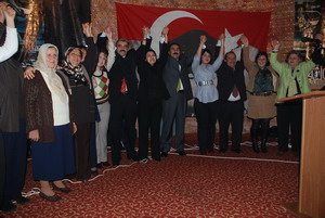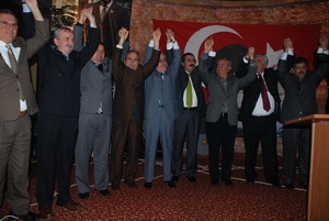 Gürcoşkun, açıklamasının sonunda partilerine yeni katılan 760 kişiyi temsilen 9 kadın ile 9 erkeği rozetlerini takmak üzere sahneye çağırdı. Ferhat Kırtaş, Gürbüz Gürcoşkun, Cemalettin Özdemir ve İdris İspirli yeni partililerine rozetlerini taktı.