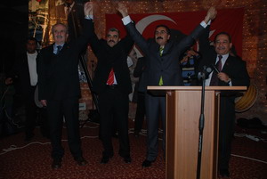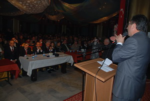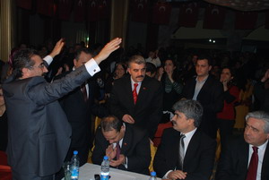 Rozet töreninden sonra kürsüde kalan İl Başkanı Ferhat Kırtaş, yaptığı konuşmanın büyük kısmında AKP hükümetine yüklendi. Hem dış hem de iç politikasını eleştirdiği AKP'nin ülkenin değerlerini yabancılara sattığını iddia etti. Kırtaş, konuşmasının sonunda övgüyle bahsettiği ve 29 Mart yerel seçimlerinde de Beldibi Belediye Başkan Adayları olduğunu açıkladığı İdris İspirli'yi yanına çağırıp, salondakilere takdim etti.