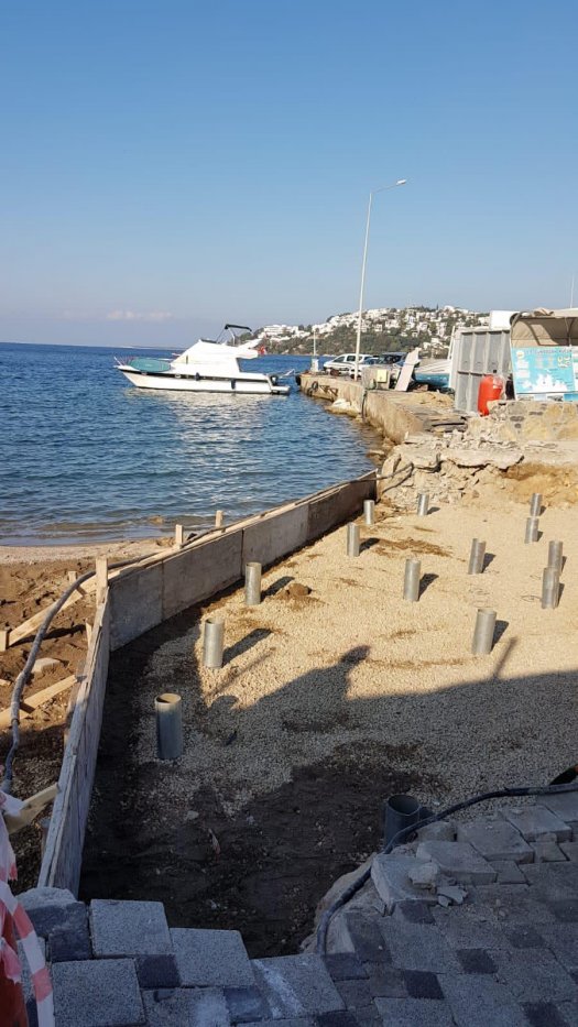 Bu heykel için Belediye kepçeleri ve elamanları çalışma yapıyorlar. Denize Fore kazık çakıyorlar. Unutmayın Bodrum’da birçok varlıklı hemşerilerimiz oturmakta. Her parası olan heykel yaptırıp belediyenin kapısına yer göster diye dayanırsa Bodrum’da boş yer kalmaz. Dağlar bile heykelle dolar taşar.