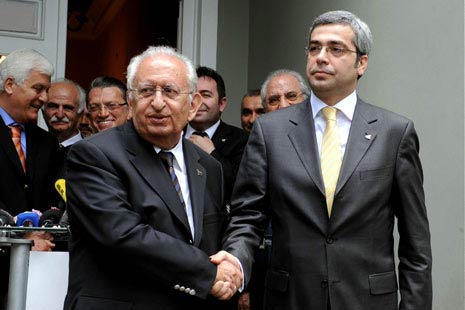 Demokrat Parti Genel Başkanı Hüsamettin Cindoruk ile Anavatan Partisi Genel Başkanı Salih Uzun bugün Celal Bayar Köşkü'nde bir araya gelerek iki partinin birleşmesi konusunda görüş birliğine vardı.