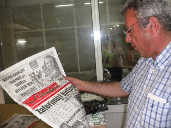 Beraberinde partisinin İlçe Başkanı Yamaç Kaya ile Beldibi Belde Başkanı Ali Bodur ile her iki örgütün yönetim kurulu üyelerinin bulunduğu Ali Bodur, kıraathanelerde halkla söyleşti. Ardından da esnafı yerinde ziyaret etti. Ali Arslan, Belediye Çarşısı'nı gezerken, gazetemizin matbasına da uğradı, burada Genel Yayın Yönetmenimiz le de referandum hakkında konuştu: