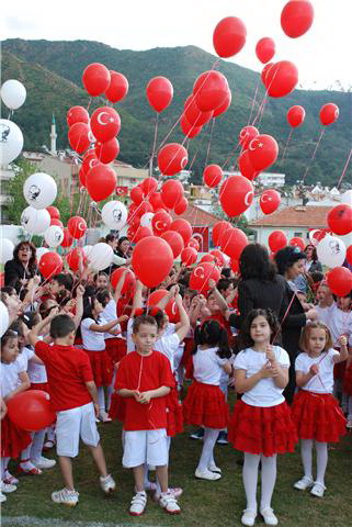 Daha sonra öğrenciler çeşitli gösteriler sundu. törende, en büyük ilgiyi çeken, anasıfı ve anaokulu öğrencileri oldu. Ellerinde Türk Bayraklı ve üzerinde 'Atam izindeyiz' yazan Atatürk posterli balonlar taşıyan, kırmızı-beyaz kıyafetli yüzlerce minik çocuk, tören boyunca, birbirinden renkli görüntüler oluşturdu.