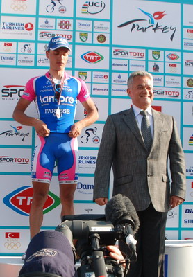 Bisiklet Federasyonu tarafından düzenlenen turun 166 kilometrelik Bodrum-Marmaris etabı, dün sabah Bodrum Kaymakamı Feridun Cemal Özdemir verdiği startla başladı. Bisikletçiler keskin yokuşlarla dolu yolu kat ederken, Marmaris'te de hummalı bir çalışma vardı. Marmaris Belediyesi çeşitli hazırlıklar yaptı. Geçen yıl olduğu gibi bu yılda paraşütlü bisikletçi gökyüzündeki yerini aldı, ayrıca 46. Bisiklet turu anısına yaptırılan hatıra panosu meydana yerleştirildi. Denizde de çeşitli su sporları gösterileri sunuldu. Tüm bu görüntüler ve Marmaris'in eşsiz doğal güzellikleri televizyonlara yansıdı. Dünyanın dört bir yanındaki milyonlarca kişiye ulaştı. 100 kadar basın mensubunun takip ettiği turun finiş heyecanı yaklaşırken, parkur kenarlarını ve ödül töreninin yapıldığı Atatürk Meydanı'nı binlerce vatandaş doldurdu. İzleyenler, müthiş bir finale şahit oldu. İtalyan ISD takımından Visconti'nin hemen ardından Slovenyalı Simon Spilak ikinci, Estonyalı Rein Taaramea da üçüncü sırayı aldı. Üçüncü Taaramea'ya Muğla Orman Bölge Müdürü İbrahim Aydın, ikinci Spilak'a Marmaris Belediye Başkanı Ali Acar, birinci Visconti'ye ise ödülünü Marmaris Kaymakamı Serdar Polat verdi. TRT'nin canlı yayınına katılan Kaymakam Polat ve Ali Acar, ülke ve bölge tanıtımına katkı sağladığına inandıklarını belirttikleri Cumhurbaşkanlığı Türkiye Bisiklet Turu'na ev sahipliği yapmaktan ötürü mutluluk duyduklarını söyledi.