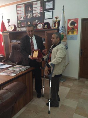 Hasar, Başkan Eren'e çalışmalarından dolayı engelli vatandaşlar adına plaket verdi.