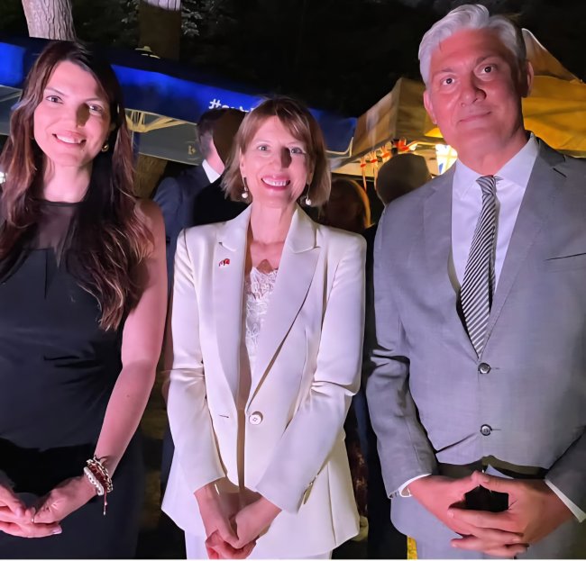 Marmarisli iş insanı Esat-Ceren Tugay çifti, 12 Haziran 2025 tarihinde İngiltere'nin Ankara Büyükelçisi Jill Morris'in ev sahipliğinde Birleşik Krallık Ankara Büyükelçilik Konutu’nda düzenlenen HM Kral Charles III'ün doğum günü resepsiyonuna katıldı. Etkinlik, iki ülke arasındaki dostane ilişkileri ve kültürel bağları güçlendirmek amacıyla gerçekleştirildi.