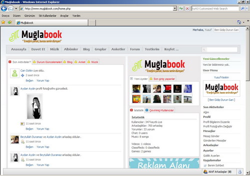 Muğlalıların yeni iletişim ağı www.muglabook.com adresi hakkında bilgi veren yetkililer, Amacımız Türkiye'nin en gözde ili Muğla'nın farkını ortaya çıkartmaktı. Muğla'da ve Muğla dışında yaşayanlara özel olarak kurulan internet sitesine üye olanlar kişisel sayfalarını oluşturup, albümlerini, bloglarını ve güncel haberlerini arkadaşları ile paylaşabilecekler. Bölgede yaşayanların birbirleriyle yeni arkadaşlıklar kurmasına yardımcı olan sitede etkinlik düzenleyebilir, gruplar kurabilir, bu sayede arkadaşlarıyla iletişime geçebilirler dedi.