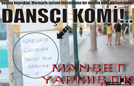 Marmaris'in en işlek noktalarından birindeki kamuya ait elektrik direğine asılmış 'Dansçı komi' ilanını konu alan haberimiz büyük yankı uyandırdı. 'Dansçı komi'yi arayan işletmenin bulunduğu İçmeler'in Belediye Başkanı Zeki Eren, restoranlarda personelin animasyon gösterisi yapmasının yasak olduğunu belirterek konuyla ilgili inceleme başlattıklarını söyledi.