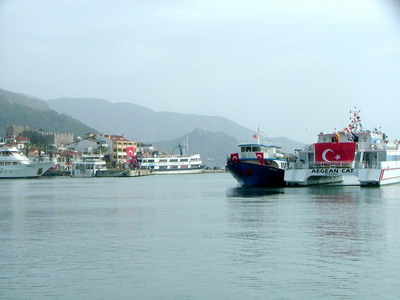 Bu arada tören boyunca, üzerinde Türk Bayrakları asılı 'Yeşil Marmaris'e ait iki katamaran ile tekneler Atatürk Meydanı yakınlarında demirli durarak, kutlamalara renk kattı.