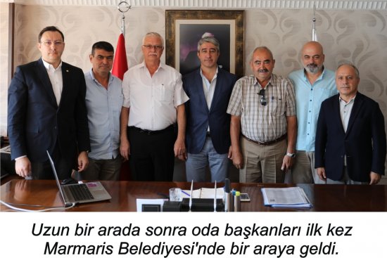 Marmaris Belediye Başkanı Mehmet Oktay, Oda başkanlarıyla bir toplantı düzenledi. Oktay'ın çağrısına uyan, Marmaris Ticaret Odası Başkanı Mutlu Ayhan, Marmaris Esnaf Odası Başkanı Şükrü Ayyıldız, GETOB Başkanı Bülent Bülbüloğlu, TÜRSAB Bölge Temsilcisi Suat Esin, Marmaris Deniz Ticaret Odası Başkanı Halil Bağlı, Marmaris Şoförler Odası Başkanı İbrahim Tarım katılarak, görüşlerini Başkan Oktay'la paylaştılar.