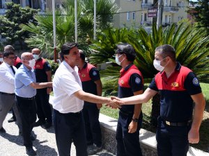 Fethiye Belediye Başkanı Alim Karaca, orman yangınlarında birlik ve beraberlik örneği gösteren, anında müdahale ve destekleriyle büyük alkış toplayan Muğla Büyükşehir Belediyesi İtfaiye Daire Başkanlığı Fethiye Grup Amirliği ve yangına araçlarıyla destek veren Urantaş İnşaat, Yiğit Beton, Balcı Beton, Sarıkaya Beton şirketlerine teşekkür ziyaretinde bulundu. Yangınlarda emek veren vatandaşlara da teşekkür ederek konuşmasına başlayan Karaca, “Bugünler siyaset günleri değil, birlik ve beraberlik günleridir” dedi.