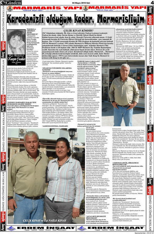 -Bu işin çözümü turizmi profesyonellerin eline teslim etmektir. Ayrıca Marmaris'in tanıtımının yapılması noktasında da, ehil eller gerekli. Her şey burada başlıyor bence. Dikkatimi çeken bir şey var. Bodrum'un mandalinasını marka yaptılar. Yarın öbür gün bakarsınız Mandalin Festivali yaparlar. Marmaris'le özdeşleşen Çam Balımızdan başka bir şeyimiz yok, onun da tanıtımını tam anlamıyla yapamıyoruz. Marmaris bir ürüne sahip çıkmak zorundadır. Bu ille sebze, meyve olmasın. Marmaris kültür varlıklarıyla da ön plana çıkabilir. Yaşadığımız yer kapkaçıyla, kavgalarıyla yer almamalı basında. Bu olaylar ne yazık ki yabancı basında da yer alıyor. Bunlar turizmimizi yaralıyor. Marmaris konferanslarıyla, seminerleriyle, güzellikleriyle, misafirperverlikleriyle haber olmalı.