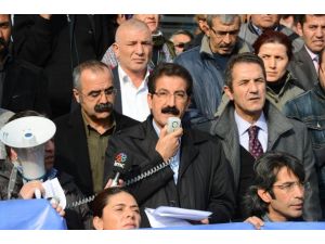 Bu arada adliye önünde basın açıklaması yapan KESK Genel Başkanı Lami Özgen, son iki yılda 400 sendika yöneticisi ve üyesinin gözaltına alındığını, 47'sinin ise hala tutuklu bulunduğunu söyledi.