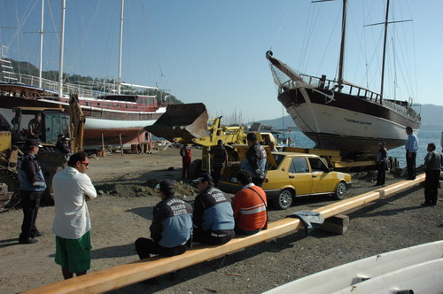 Çekek yerinde iki hafta önce Muhsin Kaptan isimli ahşap guletin karaya alındığı bilgisini alan Marmaris Belediyesi Zabıta Ekipleri, tekneyi çeken kızağın önünü iş makineleriyle kapattı. Yarısına kadar karaya çıkartılabilen yatın batma tehlikesi geçirdiği için acil olarak karaya çekilmesi gerektiğini iddia eden çekek yeri yetkilileri ile zabıta arasında tartışma yaşandı.