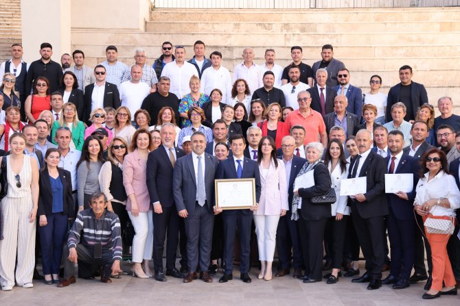 Konuşmaların ardından Belediye Başkanı Acar Ünlü, eski dönemi temsilen Başkanvekili Burak Demirtaş’a 5 yıllık hizmetleri için teşekkür ederek, bir plaket sundu. Daha sonra tüm konuklar devir teslim töreni için başkanlık makamına geçti. Devir teslim töreninden sonra Başkan Acar Ünlü tekrar kendisini bu göreve layık gören herkese teşekkür ederek, başkanlık koltuğuna oturdu. Vatandaşların ve partililerin yoğun ilgisiyle karşılaşan Başkan Acar Ünlü’yü belediye personeli de sırayla tebrik etti.