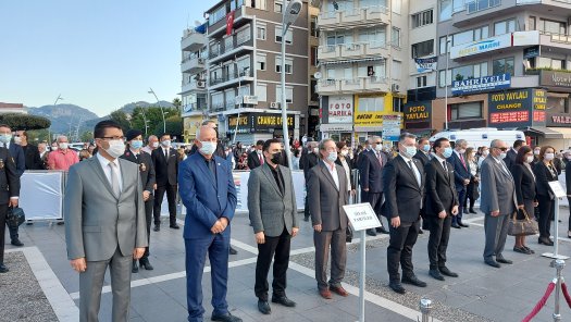 Törene, Marmaris kaymakamı Ertuğ Şevket Aksoy, Aksaz Deniz Üs Komutanı (Marmaris Garnizon Komutanı) Tuğamiral İbrahim Kurtuluş Sevinç, Marmaris Belediye Başkanı Mehmet Oktay, Ticaret Odası Başkanı S. Mutlu Ayhan, Marmaris İlçe Emniyet Müdürü Namık Söylemez, Marmaris İlçe Jandarma Komutanı J. Bnb. Murat Çam, AK Parti İlçe Başkanı Ceyhun Gökmen, CHP İlçe Başkanı Zekican Balcı, İYİ Parti İlçe Başkanı Ali Toksoy, MHP İlçe Başkanı Kemal Kalemci, Vatan Partisi Marmaris İlçe Başkanı Ertan Yıldırım, Marmaris İlçe Tarım ve Orman Müdürü Nejmettin Kaya ve kurum amirleri, askerler ve vatandaşlar katıldı.