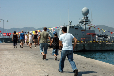 Marmaris Liman Başkanlığının karşısındaki iskeleye yanaşan TCG Fırtına hücum botu ve açığa demirleyen TCG Gemlik firkateyni vatandaşların ve turistlerin ziyaretine açıldı. Gemileri gezmek isteyen vatandaşlar ve turistler kontrol noktasından geçirilirken, ziyaretçilerin gemilerin içerisinde fotoğraf, görüntü çekmelerine müsaade edilmedi. Açığa demirleyen TCG Gemlik firkateynini gezmek isteyenler botla taşındı. Donanma gemilerini ziyaret eden turistler ise ''30 Ağustos Zafer Bayramı ve Türk Silahlı Kuvvetler Günü'' hakkında görevli personelden bilgi aldılar. Özellikle turistlerin yoğun ilgi gösterdiği gemilerin akşam saatlerine kadar ziyarete açık olduğu belirtildi