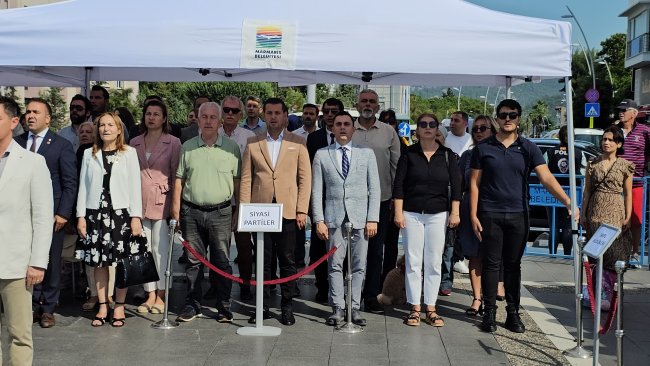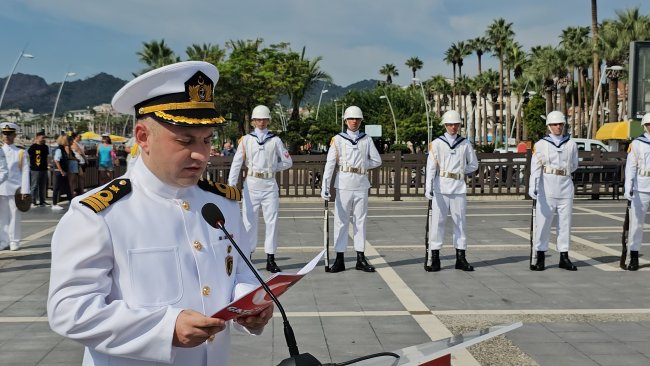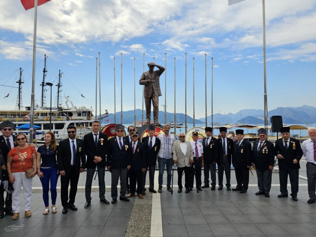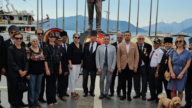 Marmaris Atatürk Meydanı'nda sabah saat 10.30 'da başlayan programda, Kaymakam Nurullah Kaya , Aksaz Garnizon Komutanı Tuğamiral Neslim Eski, Belediye Başkanı Acar Ünlü ve Muharip Gaziler ilçe Temsilcisi Azmi Özkan çelenk sunumu yaptı. Çelenk sunumunun ardından Aksaz Bandosu eşliğinde 1 dakikalık saygı duruşu ve İstiklal Marşı okundu.