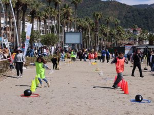 Marmaris’e deprem bölgesinden gelen çocukların da aileleriyle birlikte katıldığı etkinlikte, Halk plajında kurulan parkurlarda birbirinden eğlenceli oyunlar oynayan çocukların mutluluğu gözlerinden okunuyordu.