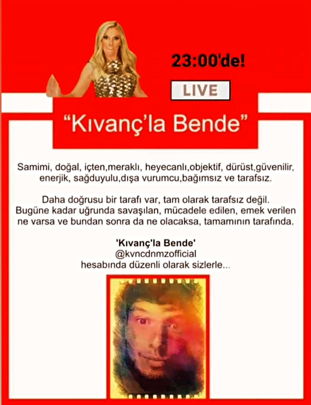 Görsel: Dijital Yayıncı Ares Kıvanç Dönmez’in, pandemi istagramında ekrana taşıdığı, Ayşe Keskin Kılıç’ın koordinatörlüğünü üstlendiği ‘Kıvanç'la Bende Bağımsız İnstagram Ortak Canlı Yayınları’ adlı yayının genel tanıtım postu.