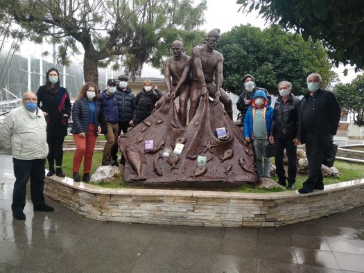 Fenerin arkasında bulunan heykeltıraş Tankut Öktem tarafından yapılan Balıkçı heykeline kitaplarını koyan şairler “ Maya tuttu, balıkçıların ağlarından balıkla beraber kitaplar da çıkmaya başladı” esprisi ile özlemlerini dile getirdiler.