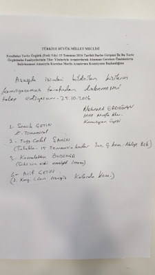 · Darbe Girişiminin bastırılma çalışmalarının devam ettiği 16 Temmuz 2016 tarihinde, saat 17.00 sularında toplanan TBMM Genel Kurulunda Tüm Siyasi Parti Liderleri konuşma yapmışlardır. Ancak raporda sıkça yapıldığı gibi sadece AKP ‘li siyasilerin yani Başbakanın ve Meclis Başkanının konuşmalarına isimleri verilerek atıfta bulunulmuştur.