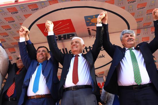 Ergun, “Türkiye’nin her tarafından millet ittifakı kurduk. Bu ittifakın bir ayağı Muğla’da. İyi partinin Muğla Büyükşehir Belediye Başkanlık adayı Millet ittifakı adayı olan Sayın Osman Gürün’dür. İyi Partili kardeşlerime sesleniyorum. Balıkesir’de İsmail Ok İyi partili bir adaydır. Balıkesir’de ki CHP’liler ilçe ilçe, mahalle mahalle, sokak sokak, gezerek İsmail Ok’a oy istiyor. Bende sizlerden ev ev, sokak sokak, cadde cadde gezerek CHP’nin de adayı olan Osman Gürün’e oy istiyorum. Onlar orada bize oy verecek bizde onlara oy vereceğiz. Denizli’de de aynı şekilde aday iyi partili bir aday. Ana mücadelemiz Türkiye’yi üretmeyen bir toplum haline getiren bu iktidara bir ders vermek” dedi.