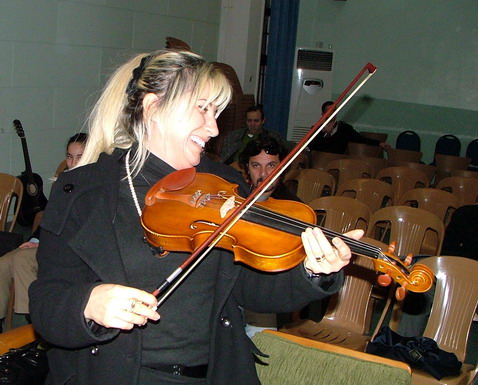 Züleyha Aldoğan daha sonra orkestrayla adeta kaynaştı. Söylenen şarkılara eşlik etti. Seslendirilen eserleri coşkuyla alkışladı. Bu arada bir öğrenci, Aldoğan'a keman tutmayı öğretti.