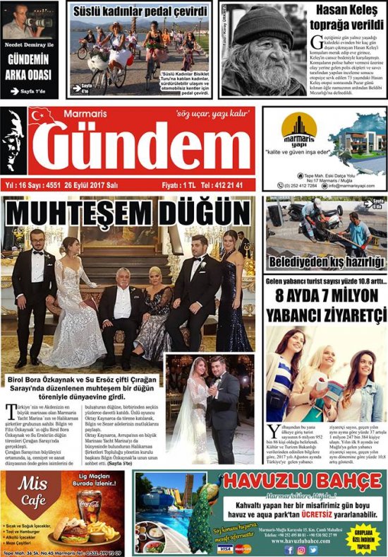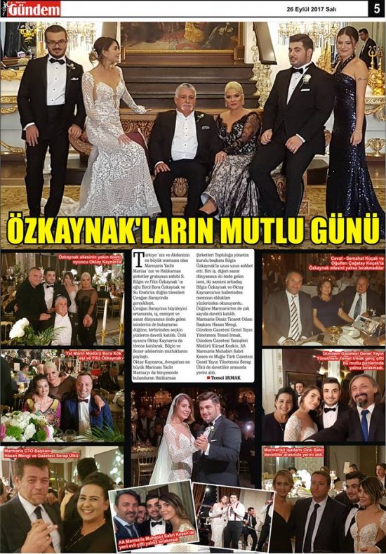 Türkiye´nin ve Akdenizin en büyük marinası olan Marmaris Yacht Marina´nın ve Halikarnas şirketler grubunun sahibi Bilgin ve Filiz Özkaynak´ın oğlu Birol Bora Özkaynak ve Su Ersöz’ün düğün törenleri Çırağan Sarayı’nda gerçekleşti.
