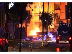 Daha sonra barikatı ateşe veren gruptakiler, kendilerini dağılmaları yönünde uyaran polislere, taş, molotofkokteyli ve havai fişekle karşılık verdi.
