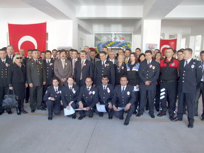 Alandaki törenin ardından Yaşar Turan Çebi İlçe Emniyet Müdürlüğü'nde kutlamaları kabul etti.
