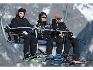 Kayak pistinde birkaç kez başarılı başarılı iniş yapan Putin'e daha sonra Medvedev de eşlik etti. Beraber kayak yapan iki Rus lider, kar üstünde sıcak bir sohbet de yaptı.