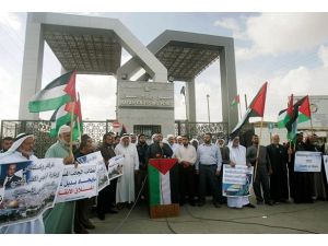 Gazze'nin güneyindeki sınır kapısı önünde bir araya gelen Filistinliler, Mısır yönetimi tarafından kapatılan kapının açılması çağrısında bulundu.