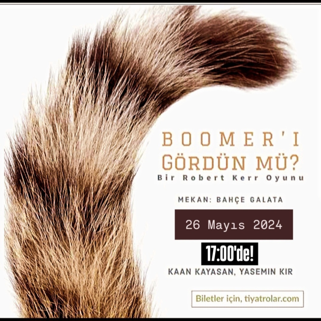 “Boomer’ı Gördün Mü?” nün, ‘26 Mayıs 2024 Cuma’ günü, sırasıyla saat ‘17:00’ ve ‘19:00’ da, alternatif gösteri mekanı ‘Bahçe Galata’ da gerçekleşecek olan gösterimlerinden birine bilet almak için yardımcı link: