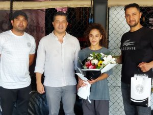 Kicboks Avrupa Şampiyonu Alya Ercan'ı (11) Marmaris Belediyesi Gençlik Spor Kulübü Başkanı Hasan Yaylalı ziyaret etti.