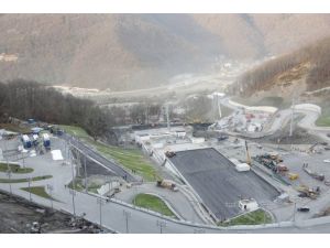 Dev bir açık hava şantiyesi görüntüsündeki olimpiyat köyündeki hazırlıklar, bir yanında Karadeniz sahili, diğer tarafında ise yemyeşil dağlar arasında ilerliyor.