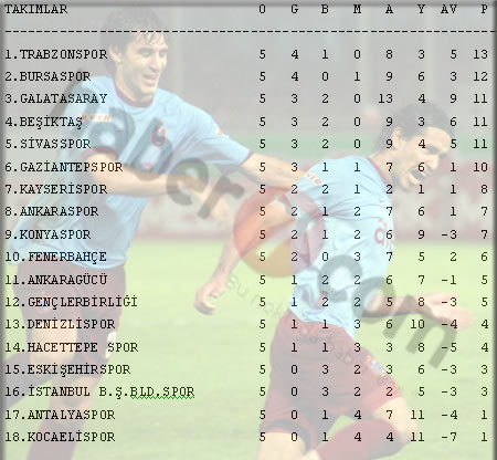 Turkcell Süper Lig'in 5. haftasında alınan sonuçlar, puan durumu ve 6. haftanın programı şöyle;