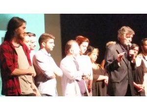Akıncı, oyuncuları ve teknik ekibi sahneye davet ederek ayrı ayrı hepsine teşekkür etti.