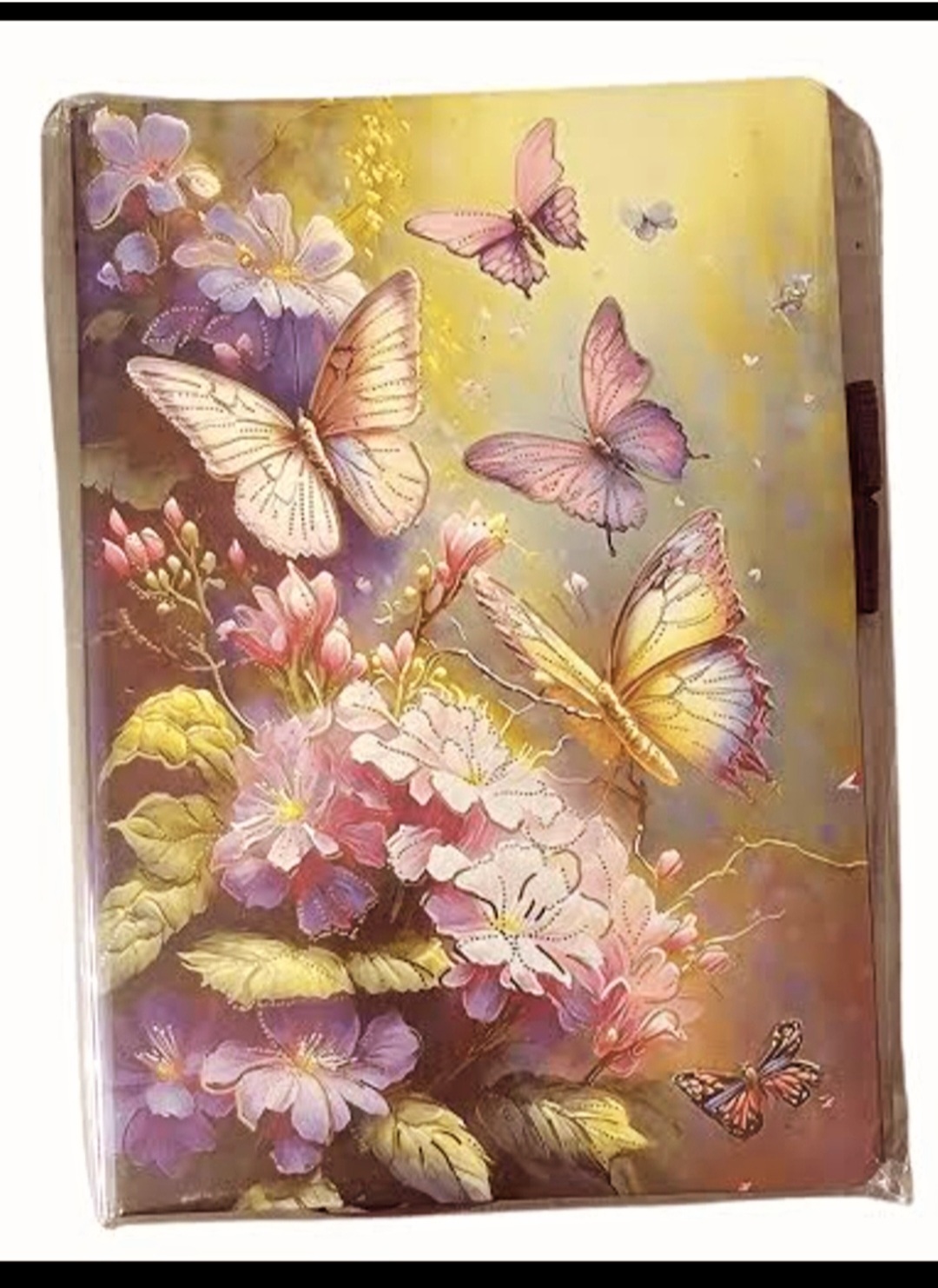 Kelebekleri çok sevdiği için kapağında kelebekler olan bir defter satın almıştık rast gelince birlikte.